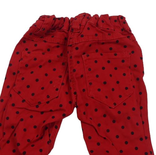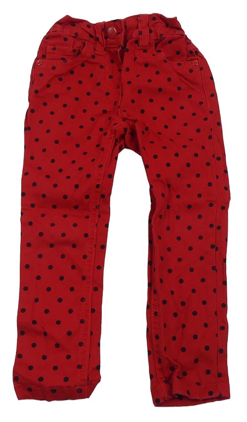 Červené puntíkaté plátěné skinny kalhoty E-Vie