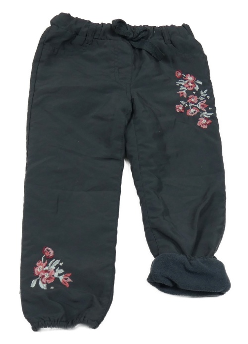 • Antracitové šusťákové zateplené kalhoty s výšivkami květů Topolino