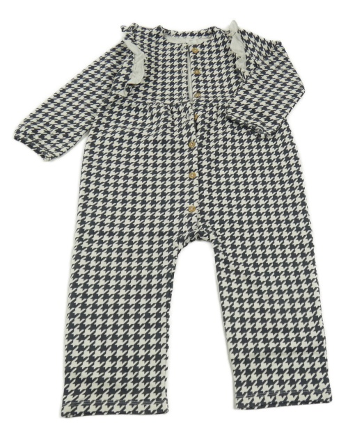 Světlebéžovo-černý vzorovaný teplákový kalhotový overal s volánky H&M