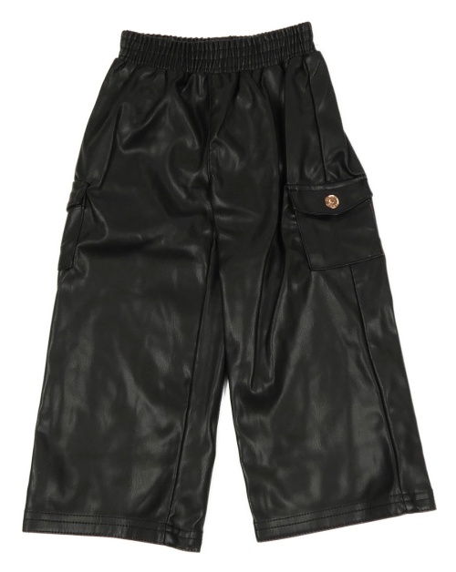Černé koženkové široké kalhoty s kapsami