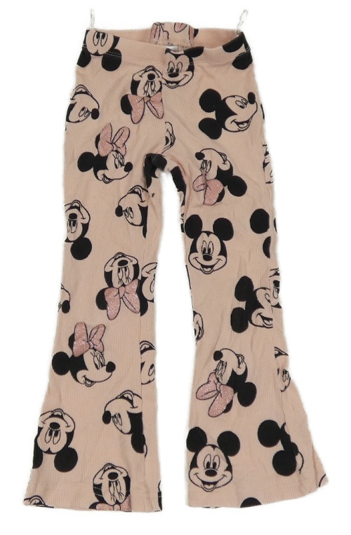 Světlerůžové žebrované flare kalhoty s Minnie a Mickey C&A