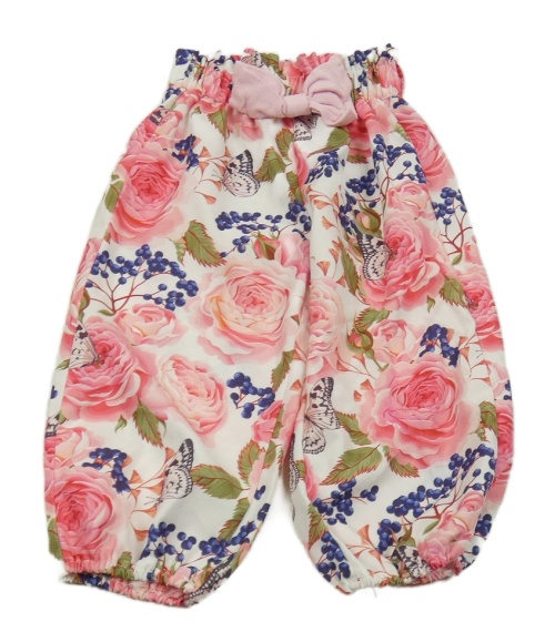 Smetanové cuff paper bag lehké kalhoty s růžemi a motýlky