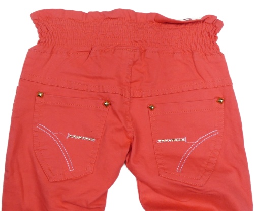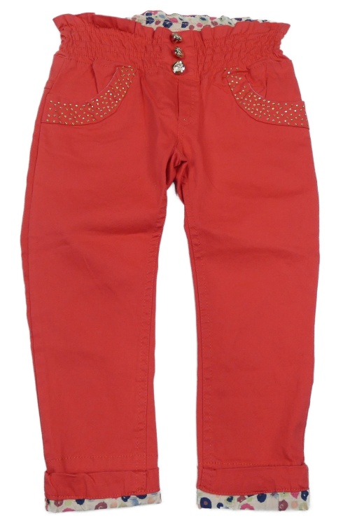 Korálové plátěné kalhoty s kamínky