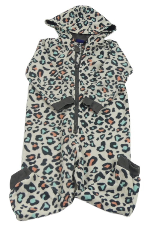 Bílo-šedo-růžovo-modrá fleecová kombinéza s leopardím vzorem a kapucí Lupilu