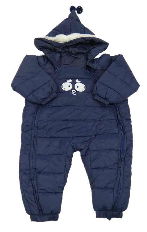 Tmavomodrá šusťáková zimní kombinéza se srdíčky a kapucí