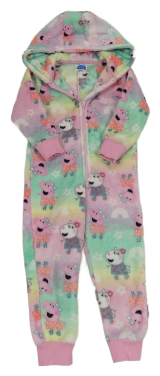 Zeleno-růžovo-fialovo-žlutá plyšová kombinéza s Peppou a kapucí