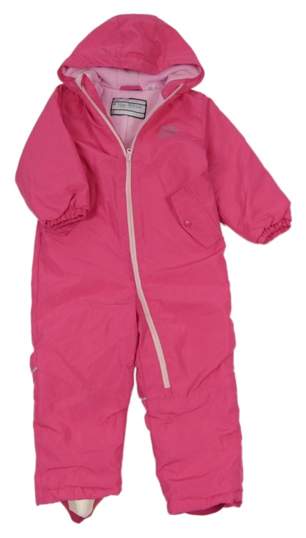 Tmavorůžová šusťáková zimní kombinéza s vločkou a kapucí