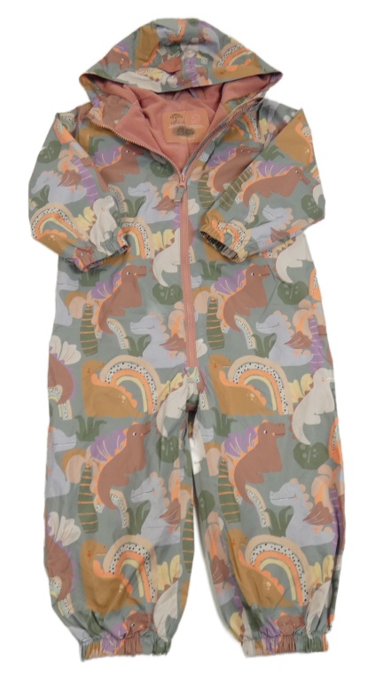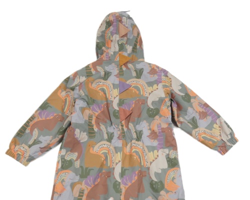Khaki šusťáková podšitá kombinéza s dinosaury a kapucí Next