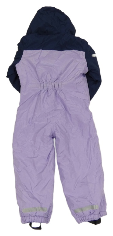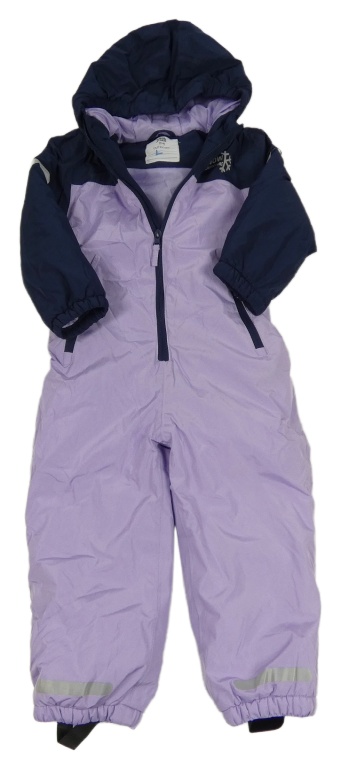 Lila-tmavomodrá šusťáková zimní kombinéza s nápisem a kapucí Kiki&Koko