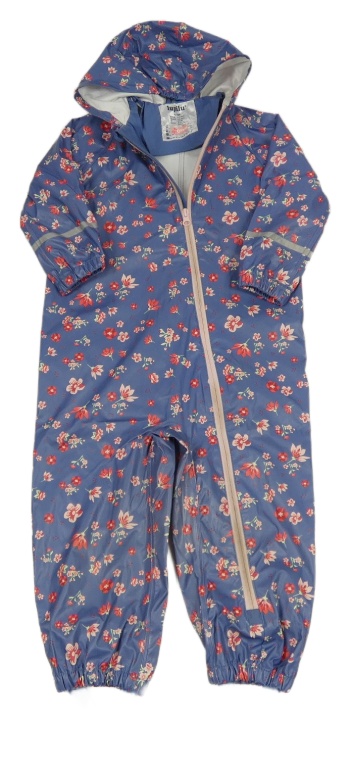 Modrá nepromokavá kombinéza s kytičkami a kapucí Lupilu