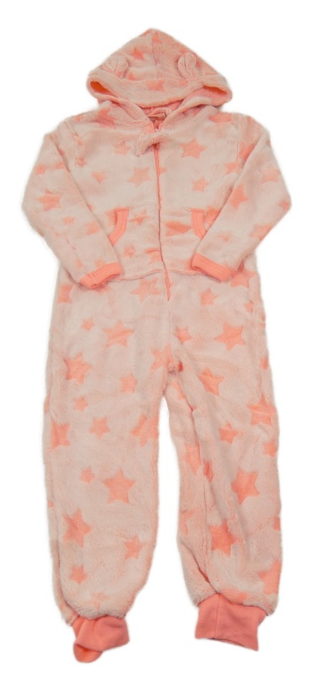 Neonově korálová plyšová kombinéza s hvězdami a kapucí Kiki&Koko