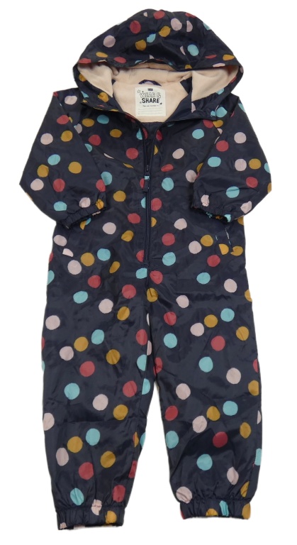 Tmavomodrá puntíkatá šusťáková podzimní kombinéza s kapucí F&F