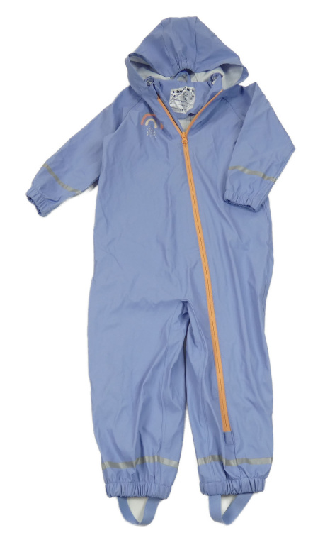 Modrofialová nepromokavá kombinéza s duhou a kapucí lupilu