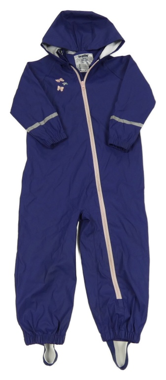 Tmavomodrofialová nepromokavá kombinéza s motýlky a kapucí lupilu