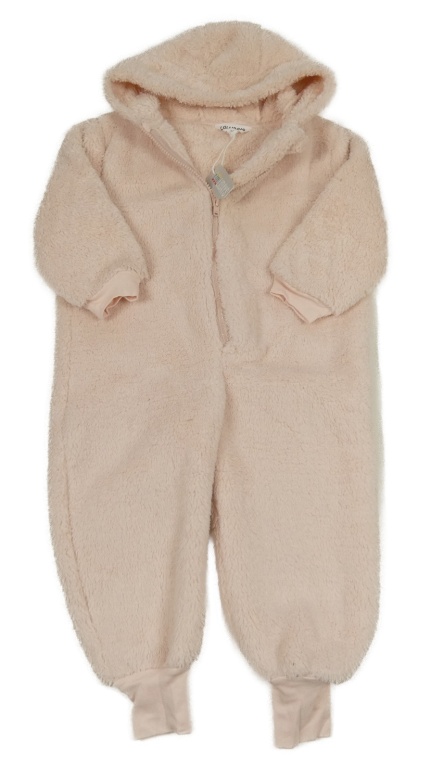 Světlerůžová chlupatá kombinéza s kapucí