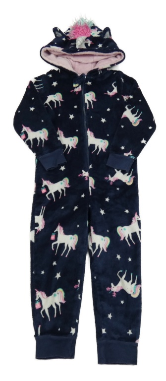 Tmavomodrá plyšová kombinéza s jednorožci a kapucí Matalan