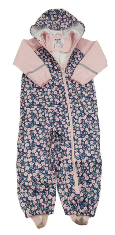 Tmavomodro-světlerůžová nepromokavá kombinéza s kytičkami a kapucí Lupilu