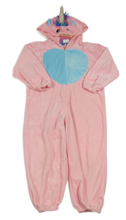 Světlerůžová plyšová kombinéza s kapucí - jednorožec