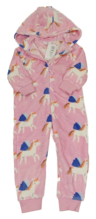 Nové - růžová plyšová kombinéza s jednorožci a kapucí M&S