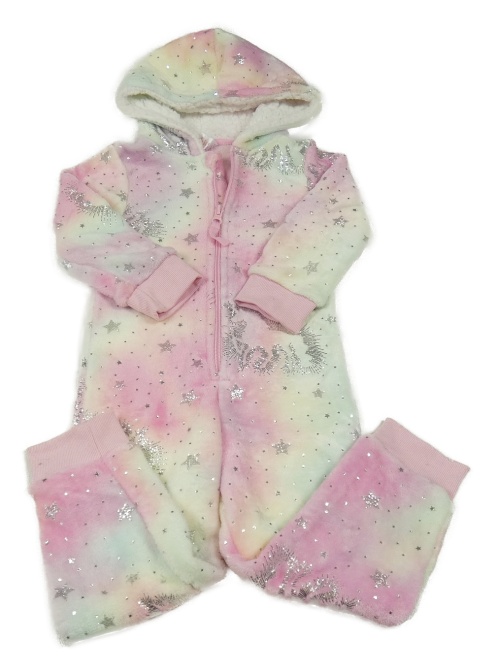 Růžovo-žlutá plyšová kombinéza s hvězdičkami a kapucí Peacocks