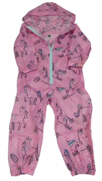 Růžová šusťáková kombinéza s jednorožci a kapucí Dunnes