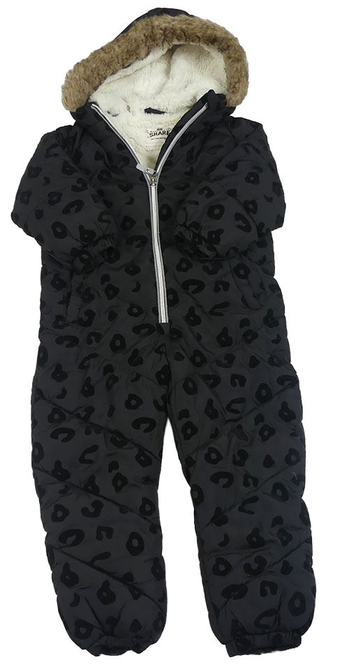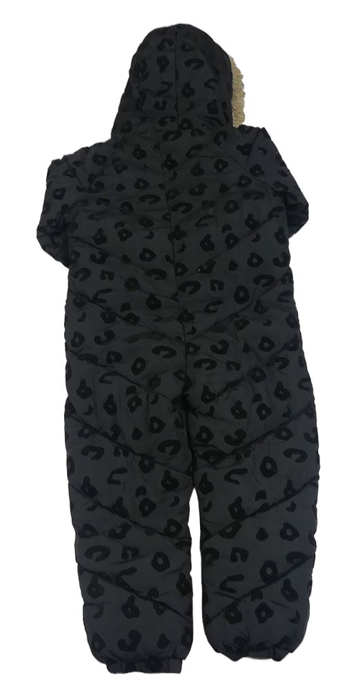 Černá šusťáková zimní kombinéza s leopardím vzorem a kapucí F&F