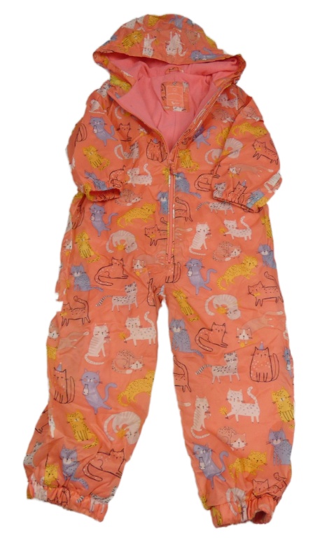 Lososová šusťáková podzimní kombinéza s kočičkami a kapucí Tu