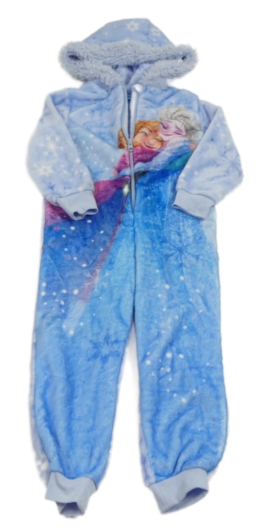 Světlemodrá plyšová kombinéza s Annou a Elsou a kapucí s kožešinou Frozen