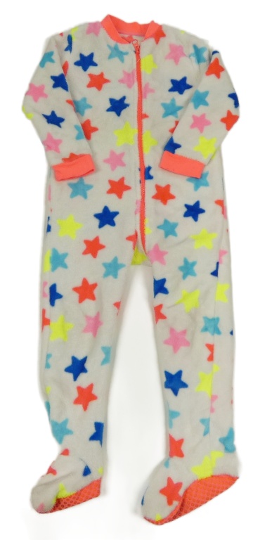Bílo-křiklavě korálová plyšová kombinéza s barevnými hvězdičkami