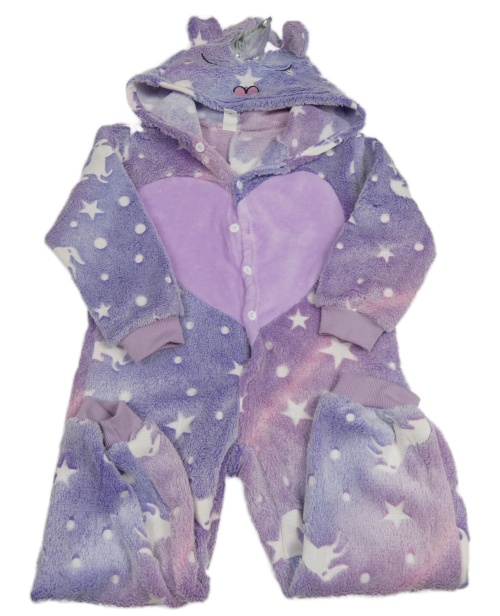 Fialovo-růžová chlupatá kombinéza s kapucí - jednorožec Shein