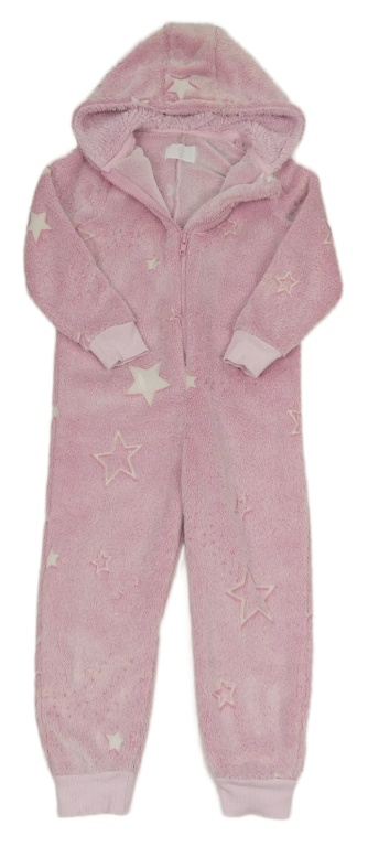 Růžová chlupatá kombinéza s hvězdami a kapucí