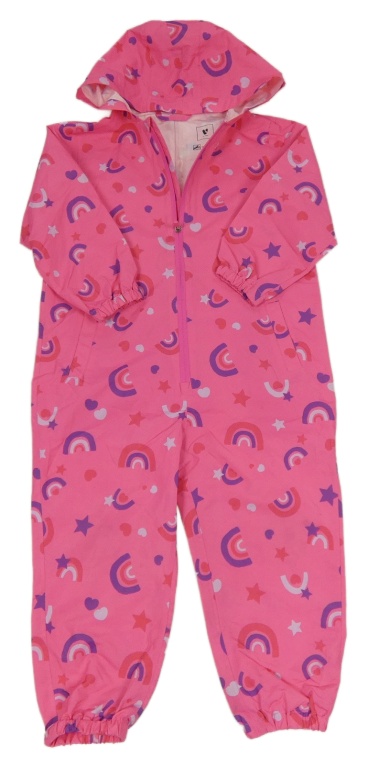 Tmavorůžová šusťáková nepromokavá kombinéza s duhami a kapucí V by Very