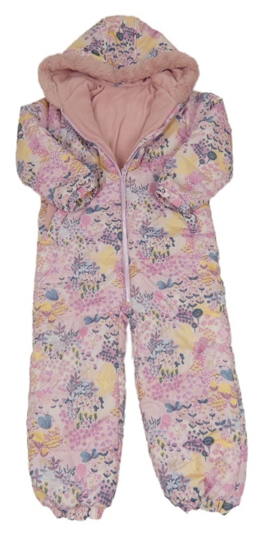 Světlerůžová květovaná šusťáková zimní kombinéza s kapucí Dunnes