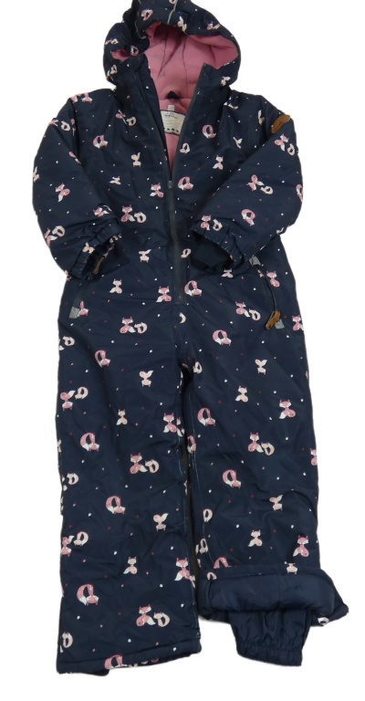 Tmavomodrá šusťáková zimní kombinéza s liškami a kapucí Topolino
