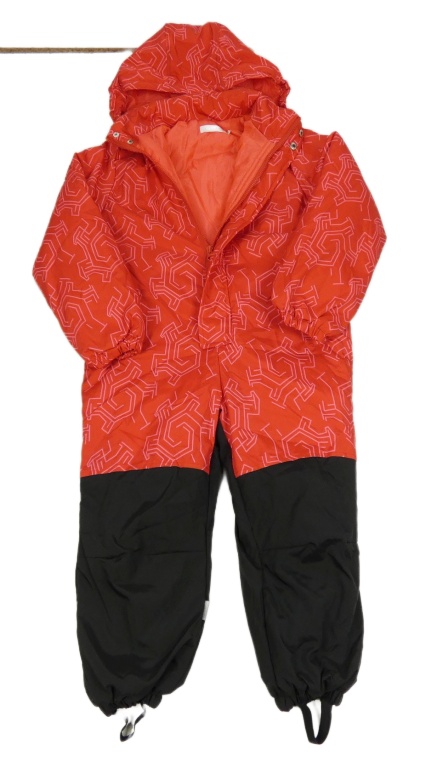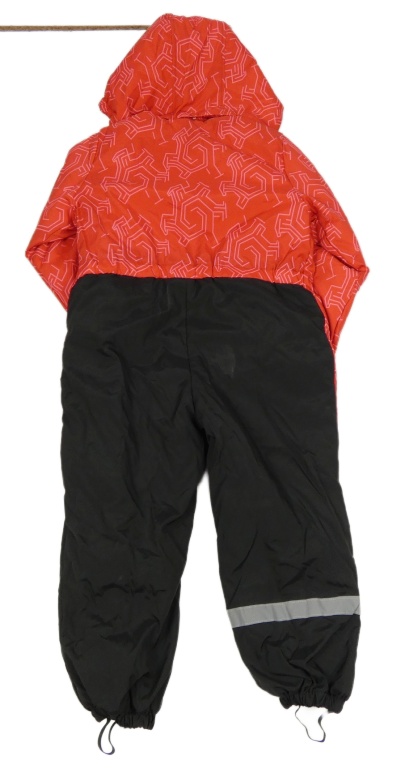 • Červeno-vzorovano-černá šusťáková zimní kombinéza s kapucí