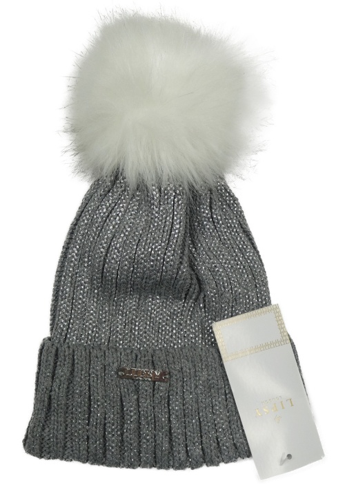 Nové - Šedá třpytivá žebrovaná čepice s bambulí Lipsy London
