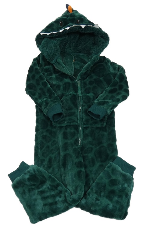 • Tmavozelená chlupatá kombinéza s kapucí - dinosaurus George