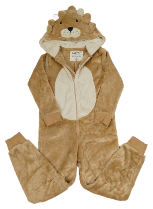 Béžovo-smetanová chlupatá kombinéza s kapucí - lev