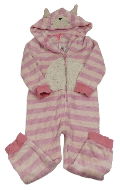 Světlerůžová pruhovaná chlupatá kombinéza s kapucí - kočka Next