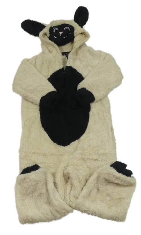 Smetanovo-černá chlupatá kombinéza s kapucí - lama