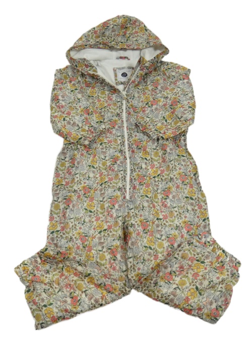 Béžová květovaná šusťáková lehce zateplená kombinéza s králíky a kapucí Tu