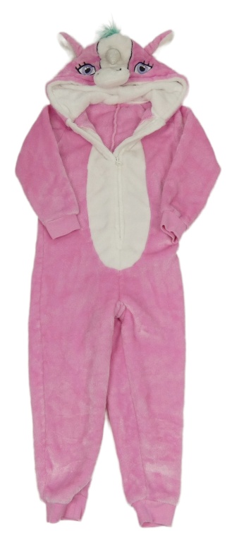 Růžovo-bílá chlupatá kombinéza s kapucí - jednorožec George