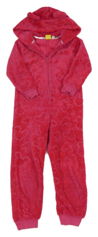 Tmavorůžová chlupatá kombinéza s Minnie a kapucí Disney
