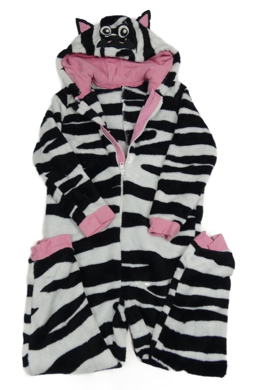 Černo-bílo-růžová plyšová kombinéza s kapucí s čumáčkem George
