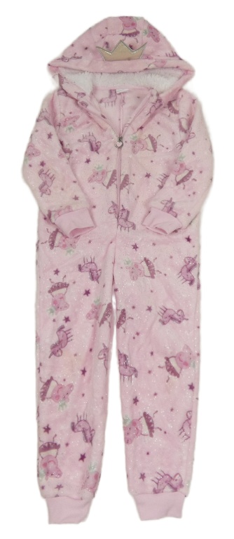 Světlerůžová třpytivá plyšová kombinéza s Peppa Pig a jednorožci a kapucí