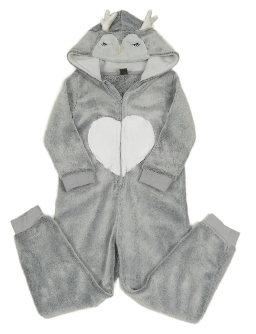 Šedo-bílá plyšová kombinéza s kapucí - sob Pep&Co