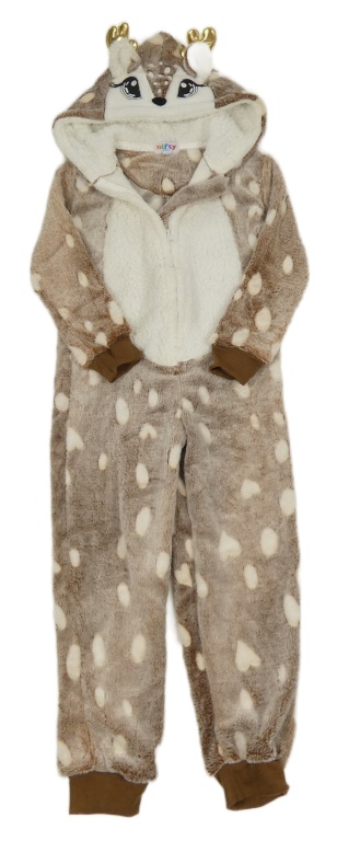 Hnědo-bílá vzorovaná chlupatá kombinéza s kapucí - sob