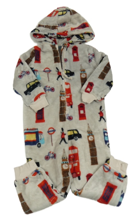 Světlešedá plyšová kombinéza s obrázky - Londýn a kapucí M&S