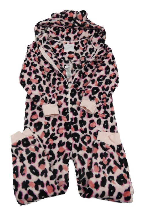Světlerůžovo-černo-růžová vzorovaná chlupatá kombinéza s kapucí Next