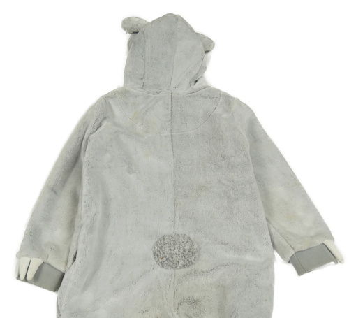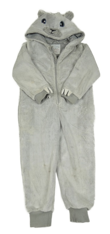 • Světlešedo-bílá plyšová kombinéza s kapucí - medvídek FAT FACE